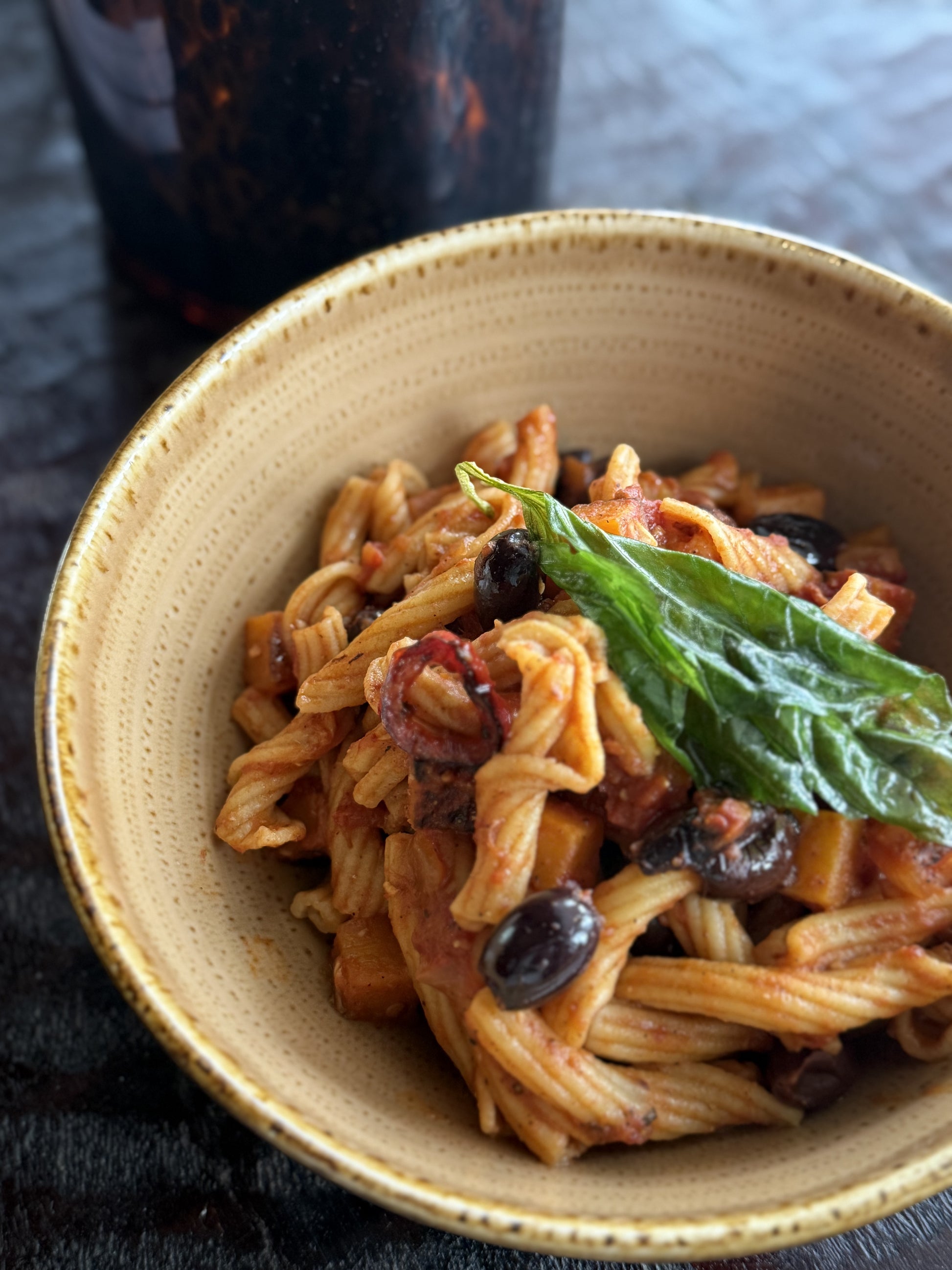 Our artisanal pasta is crafted with a time-honored bronze die cut tradition. This method creates textured pasta to absorb the sauce and capture all the flavors.