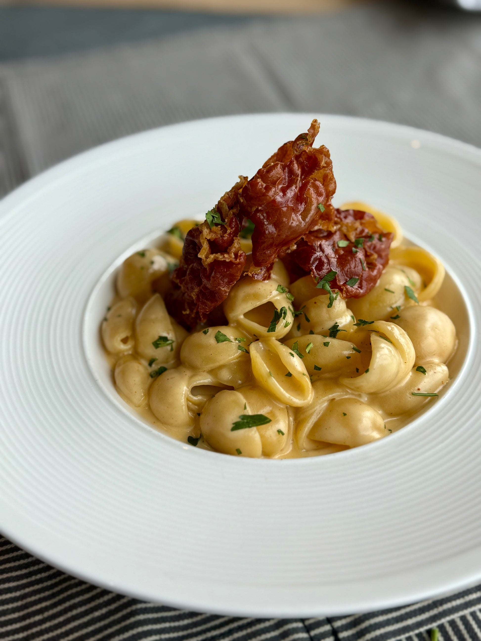 You don’t need to know how to pronounce it to fall in love with our Fresh Orecchiette! These "little ears" are perfect for catching chunky ragùs, creamy sauces, and small ingredients like peas and pancetta. We especially love it paired with our Mushroom Bolognese for a hearty, satisfying meal. Orecchiette is also incredibly versatile in cold dishes and pasta salads. Get up close to see the beautiful texture that makes this pasta a standout in any dish!